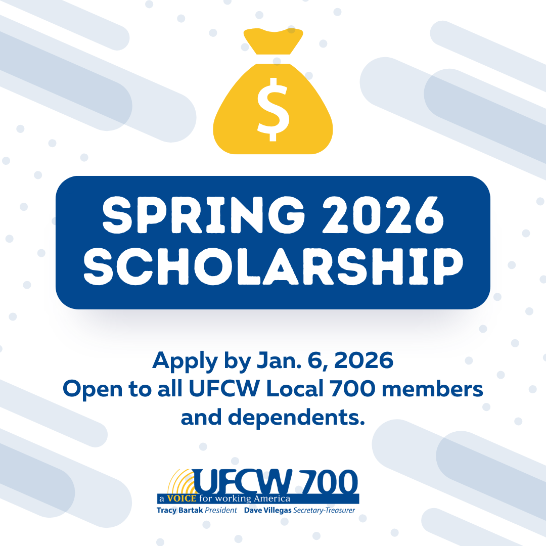 UFCW Local 700 proudly awards $22,000 per year in scholarships to members or dependents. Applications for Spring 2026 Scholarships are open NOW.